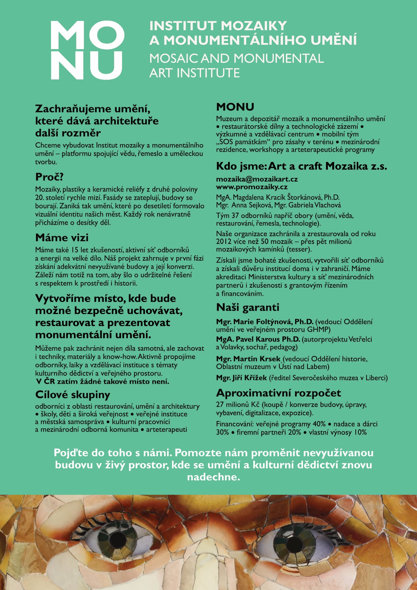Cílem MONU je vrátit monumentálnímu umění jeho místo v současnosti — a přetavit zachované fragmenty v impuls, který oživí prostor i život kolem něj.
